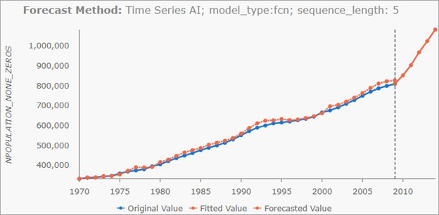 - Vorhersagemethode (METHOD): Ein Textfeld, das den Typ des verwendeten Zeitserien-KI-Modells und die Sequenzlänge anzeigt.