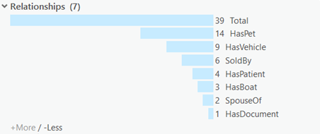 Die Balken in einem Histogramm werden standardmäßig numerisch nach der Anzahl der Instanzen eines bestimmten Wertes sortiert. Sie können die Balken jedoch auch alphabetisch nach ihren Beschriftungen sortieren. Sie können die Sortierreihenfolge ändern, um die Werte nach Bedarf in aufsteigender oder absteigender Reihenfolge anzuzeigen. Wenn die Anzahl der Instanzen jeder Entität gering, die Gesamtzahl der Entitäten jedoch groß ist, kann es hilfreich sein, den Balken, der die Gesamtzahl darstellt, aus dem Histogramm zu entfernen. Diese Änderungen werden auf alle Histogramme im Bereich angewendet.