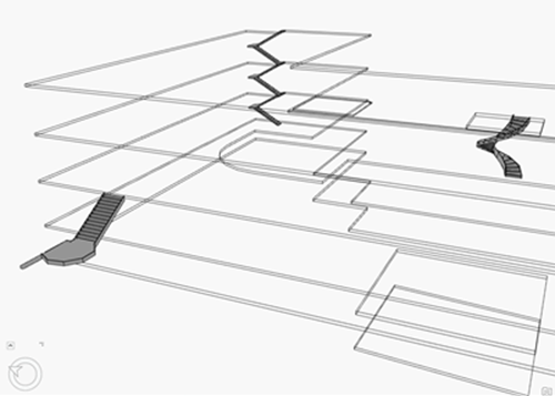 Der Filterblock, der Volumenkörper definiert, ist der erste Filterblock im Filter. Es werden nur die Außenwände als Gitternetz angezeigt, die nicht zur zweiten Etage gehören:
