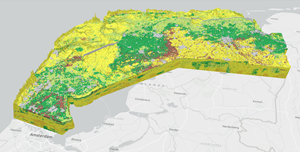 A voxel layer represents multidimensional spatial and temporal information in a 3D volumetric visualization. For example, you can visualize atmospheric or oceanic data, a geological underground model, or space-time cubes as voxel layers. Access to volumetric data about the world provides higher-accuracy analysis and a better understanding of conditions that you can't physically experience. Use voxel layers to explore spatial relationships with other content. For example, an underground model visualized as a voxel layer can be viewed together with boreholes or construction that is planned in an area.