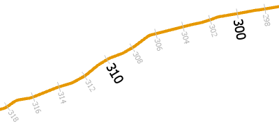 Se omite cada quinto marcador, lo que en este caso es cada 10 unidades medidas (valor de Omitir tasa de marcador multiplicado por valor de Intervalo), que es el intervalo de ubicación preciso de la capa de capa de símbolo de marcador más grande.