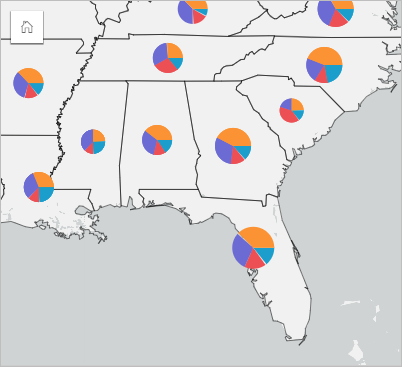 para cambiar directamente entre un mapa con símbolos de gráficos circulares y otras visualizaciones, como tabla de resumen, gráfico de barras apiladas, diagrama de cuerdas o mapa de árbol.