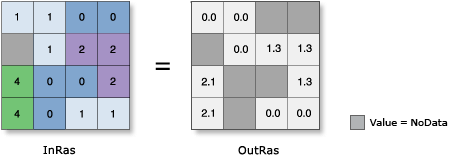 Notez que -∞ et ∞ représentent la plus petite valeur négative et la plus grande valeur positive prises en charge par le format de raster spécifique.