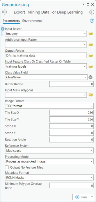 - Cliquez sur Run (Exécuter). À l’issue du traitement, les données d’entraînement exportées sont sauvegardées dans le répertoire spécifié.