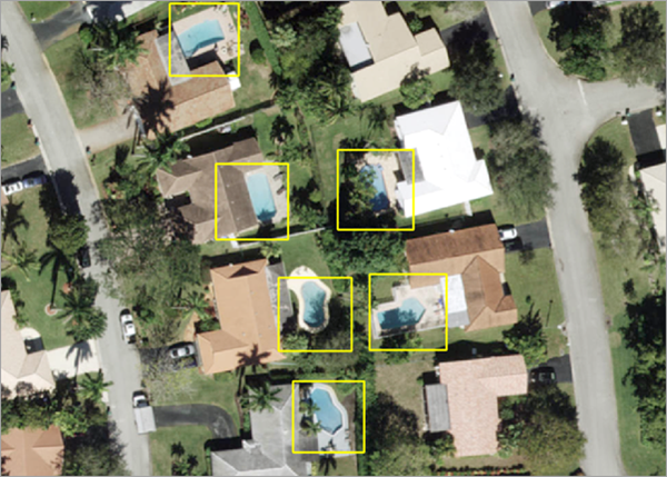 - Output Detected Objects (Objets détectés en sortie) - Définissez la classe d’entités en sortie qui contient les piscines détectées.