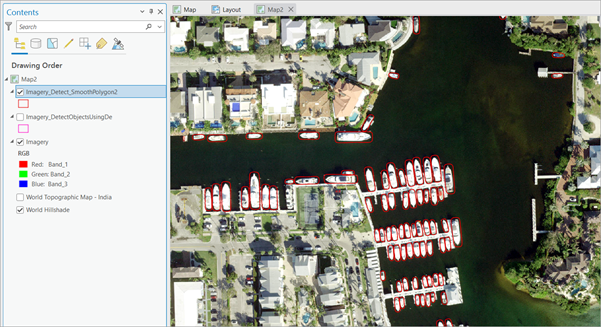 - Téléchargez le modèle Détection des navires (RVB) et ajoutez la couche d’imagerie dans ArcGIS Pro.
