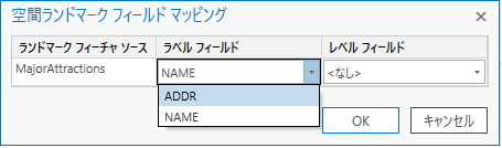 - ここで、フィールドに変更を加えたり、[キャンセル] をクリックしたりして、[空間ランドマーク フィールド マッピング] ダイアログ ボックスを閉じないでください。