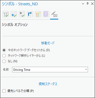 ネットワーク データセットまたはネットワーク解析レイヤーとなる移動モード ソースと規制ステータスの優先レベルを選択します。