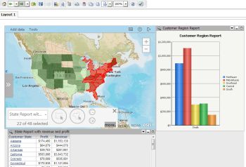 MicroStrategy Report Services ドキュメントに動的なライブ マップを付加し、ビジネス データを視覚的かつ対話的に分析することができます。Esri Maps for MicroStrategy は、カスタム コーディングや GIS の経験がなくても、MicroStrategy のデザイナとアナリストが日々のワークフローにシームレスに統合できるように設計されています。ドキュメントおよびレポート内で他のデータセットと情報をやりとりする高機能なマップを作成したり、公開された地理データを MicroStrategy の ビジネス データと組み合わせて簡単に分析したりすることができます。