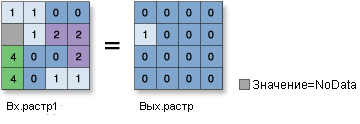 | Подпись | Описание | Тип данных | Выходной растр | Выходной растр. Выходной растр идентифицирует с помощью целочисленного значения 1, какие ячейки в входных данных имеют значение NoData. Если входные данные имеют другое значение, выходные данные будут 0. | Raster |