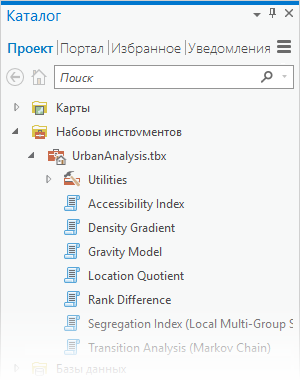 Вы можете добавлять пользовательские инструменты в галерею Анализ или Избранное на панели Геообработка.