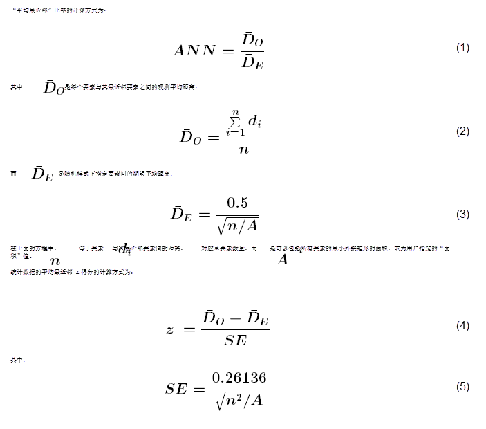 如果指数(平均最近邻比率)小于 1,则表现的模式为聚类。如果指数大于 1,则表现的模式趋向于扩散。