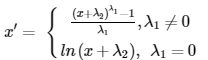 其中 x' 为变换后的值,x 为原始值,λ1 为幂(指数)参数,λ2 为偏移参数。