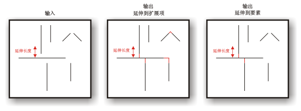 延伸到扩展项 (可选) | 指定线段是否可延伸至指定延伸长度范围内的其他延伸线段。