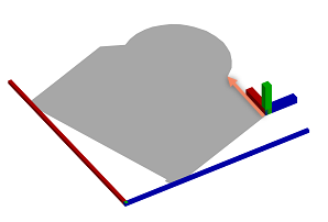 初始形状。 初始范围 x 轴和枢轴 x 轴与几何的第一条边对齐(通过箭头表示)。 y 轴与面法线对齐。 枢轴的原点位于第一条边处。 | ![]() |
