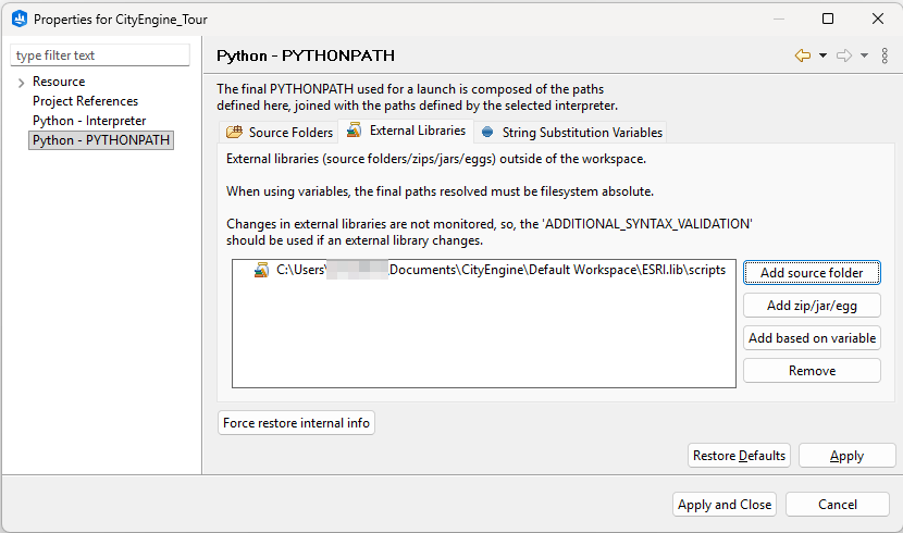 import sys sys.path.append("... path to module X ...") import X - 在 UI 中,通过在工程属性中的“外部库”下添加路径(例如,另一个工程的“scripts”文件夹):